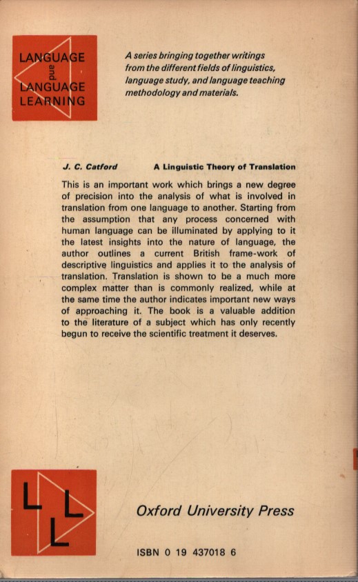 A LINGUISTIC . THEORY OF TRANSLATION AN ESSAY IN APPLIED LINGUISTICS