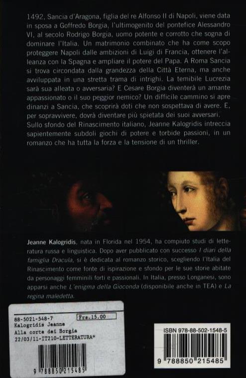 La giovane e vivace Sancia di Aragona viene data in sposa a Goffredo Borgia: un matrimonio combinato per ampliare il potere di papa Rodrigo Borgia, Alessandro VI, che nella sua corrotta corte romana nutre il sogno ambizioso di dominare l’Italia. Giunta a Roma da Napoli, Sancia si trova circondata dalla grandezza della Città Eterna ma anche avviluppata in una stretta trama di intrighi, complotti e torbide relazioni. La temibile Lucrezia esperta di veleni, sua cognata, sarà sua alleata o nemica? E Cesare Borgia diventerà un amante appassionato o il suo peggior nemico? Tra delizie e pericoli, insidie e piaceri, Sancia – personaggio ispirato a una figura storica – intraprende il suo difficile cammino, scoprendo in sé doti che non sospettava di avere.