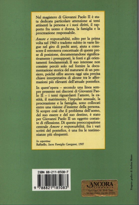 Nel magistero di Giovanni Paolo II è stata dedicata particolare attenzione ai temi attinenti la persona e i suoi diritti, il rapporto fra uomo e donna, la famiglia e la procreazione responsabile. Il presente libro, edito per la prima volta nel 1960 e tradotto subito in varie lingue nel giro di pochi anni, aiuta a conoscere il retroterra concettuale di queste prese di posizione, documentandone significativamente i presupposti, le fonti e gli orientamenti fondamentali. Il tentativo è quello non solo di fornire la documentazione storica del maturarsi di un pensiero, poiché offre ancora oggi una precisa chiave interpretativa di alcune tra le affermazioni più rilevanti di papa Wojtyla.