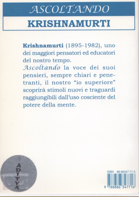 ASCOLTANDO KRISHNAMURTI . UNA VOCE DI EFFICACIA STRAORDINARIA. UNO DEI PIÙ GRANDI GIGANTI DEL PENSIERO