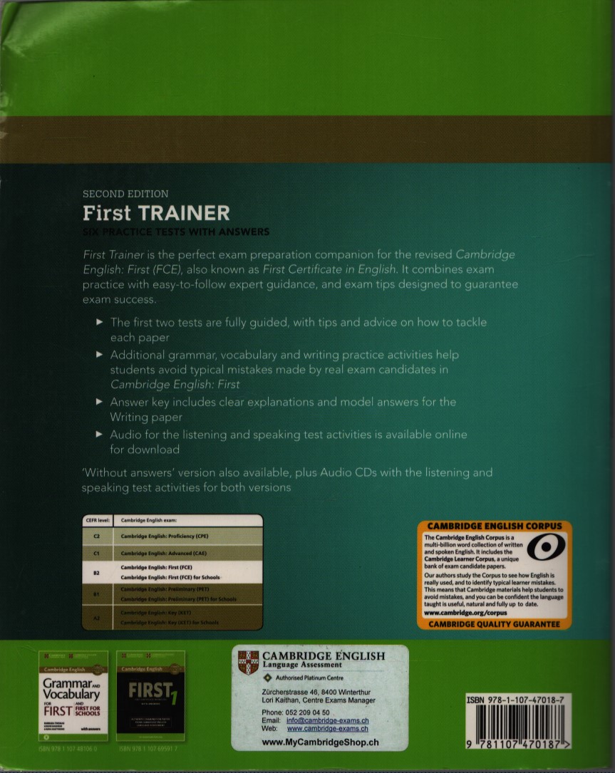 CAMBRIDGE ENGLISH . SECOND EDITION . FIRST TRAINER . SIX PRACTICE TESTS WITH ANSWERS