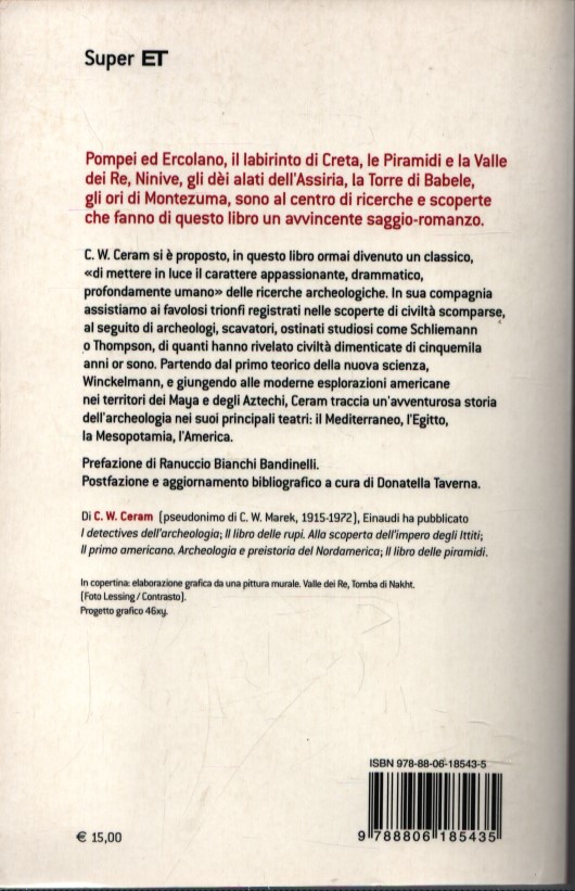 C. W. Ceram si è proposto, in questo libro ormai divenuto un classico, “di mettere in luce il carattere appassionante, drammatico, profondamente umano” delle ricerche archeologiche. In sua compagnia assistiamo ai favolosi trionfi registrati nelle scoperte di civiltà scomparse, al seguito di archeologi, scavatori, ostinati studiosi come Schliemann o Thompson, di quanti hanno rivelato civiltà dimenticate di cinquemila anni or sono. Partendo dal primo teorico della nuova scienza, Winckelmann, e giungendo alle moderne esplorazioni americane nei territori dei Maya e degli Aztechi, Ceram traccia un’avventurosa storia dell’archeologia nei suoi principali teatri: il Mediterraneo, l’Egitto, la Mesopotamia, l’America.
