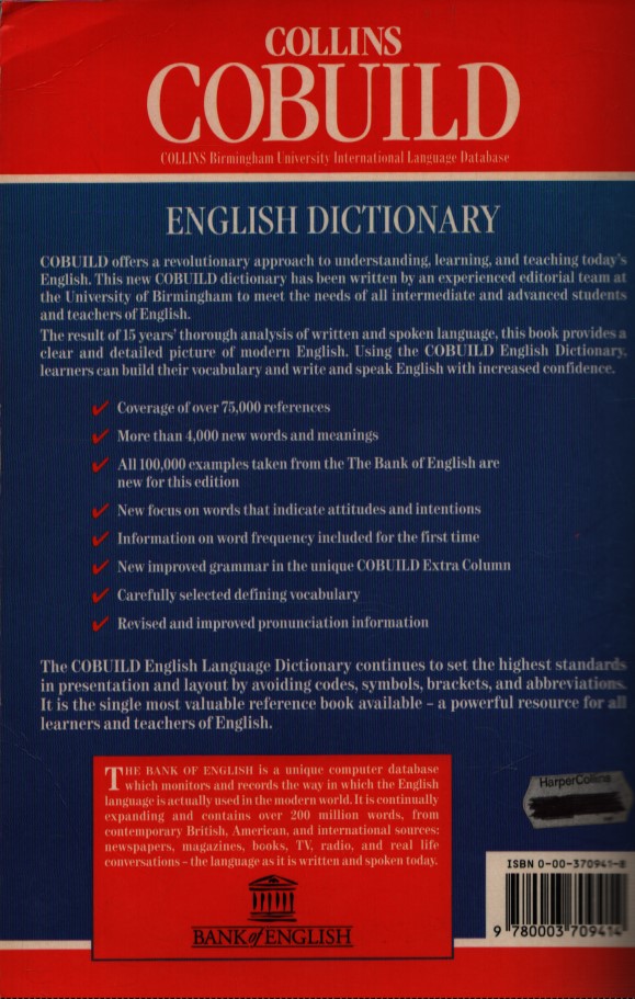 COLLINS COBUILD . ENGLISH DICTIONARY: HELPING LEARNERS WITH REAL ENGLISH . NEW EDITION