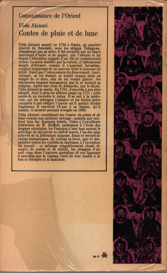 L’opera più bella dello scrittore classico giapponese Ueda Akinari (1734-1809) è questa raccolta di “Racconti di chiaro di luna e pioggia”. In queste storie fantastiche, il lettore assisterà all’apparizione, all’azione e alla scomparsa di ogni sorta di fantasmi. Una deliziosa miscela di magia, poesia e realtà riporta in vita il mondo familiare e incantato dell’antico Giappone.