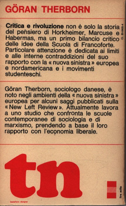 CRITICA E RIVOLUZIONE . SAGGIO SULLA SCUOLA DI FRANCOFORTE