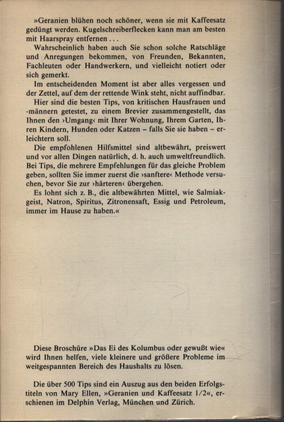DAS EI DES KOLUMBUS ODER GEWUSST WIE . ÜBER 500 PRAKTISCHE, ÜBERRASCHENDE, VIELFACH ERPROBTE UND ORIGINELLE TIPS FÜR IHREN HAUSHALT