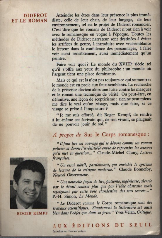 DIDEROT ET LE ROMAN . OU LE DÉMON DE LA PRÉSENCE