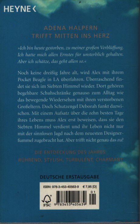 Non ancora trentenne, Alex viene investita da un’auto a Los Angeles mentre cavalca il suo Pocket Beagle. Sorprendentemente, si ritrova al settimo cielo. Lì, le cabine armadio sono parte della vita quotidiana tanto quanto la commovente riunione con i suoi nonni defunti. Ma il suo angelo custode, Deborah, interviene. Alex deve prima dimostrare di meritare il settimo cielo scrivendo un saggio sui dieci giorni più belli della sua vita, dimostrando di non aver trascorso la vita a rincorrere senza meta gli ultimi abiti firmati. Ma non è proprio la verità?