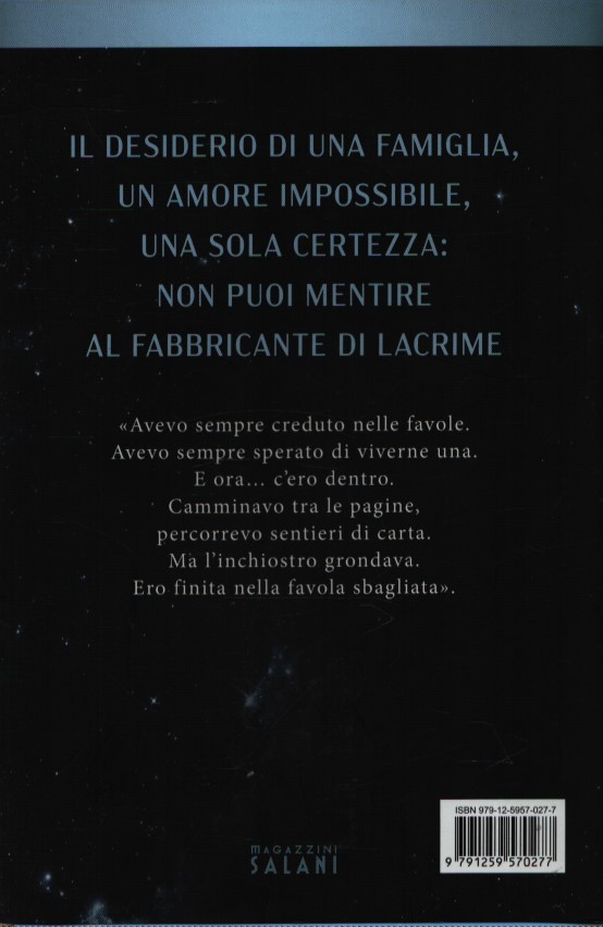 Tra le mura del Grave, l’orfanotrofio in cui Nica è cresciuta, si raccontano da sempre storie e leggende a lume di candela. La più famosa è quella del fabbricante di lacrime, un misterioso artigiano dagli occhi chiari come il vetro, colpevole di aver forgiato tutte le paure e le angosce che abitano il cuore degli uomini. Ma a diciassette anni per Nica è giunto il momento di lasciarsi alle spalle le favole tetre dell’infanzia. Il suo sogno più grande, infatti, sta per avverarsi. I coniugi Milligan hanno avviatole pratiche per l’adozione e sono pronti a donarle la famiglia che ha sempre desiderato. Nella nuova casa, però, Nica non è da sola. Insieme a lei viene portato via dal Grave anche Rigel, un orfano inquieto e misterioso, l’ultima persona al mondo che Nica desidererebbe come fratello adottivo. Rigel è intelligente, scaltro, suona il pianoforte come un demone incantatore ed è dotato di una bellezza in grado di ammaliare, ma il suo aspetto angelico cela un’indole oscura. Anche se Nica e Rigel sono uniti da un passato comune di dolore e privazioni, la convivenza tra loro sembra impossibile. Soprattutto quando la leggenda torna a insinuarsi nelle loro vite e il fabbricante di lacrime si fa improvvisamente reale, sempre più vicino. Eppure Nica, dolce e coraggiosa, è disposta a tutto per difendere il suo sogno, perché solo se avrà il coraggio di affrontare gli incubi che la tormentano, potrà librarsi finalmente libera come la farfalla di cui porta il nome.