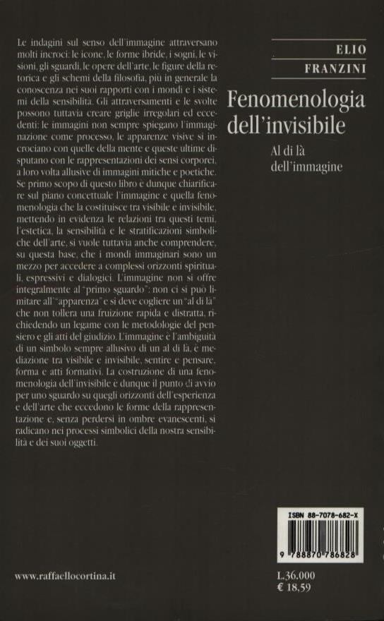 Non sempre le immagini spiegano l’immaginazione come processo, le apparenze visive si incrociano con quelle della mente e queste ultime disputano con le rappresentazioni dei sensi corporei, a loro volta allusive di immagini mitiche e poetiche. Se primo scopo di questo libro è dunque chiarificare sul piano concettuale l’immagine, si vuole anche comprendere, su questa base, che i mondi immaginari sono un mezzo per accedere a complessi orizzonti spirituali, espressivi e dialogici. L’immagine non si offre integralmente al “primo sguardo”: non ci può limitare all'”apparenza” e si deve cogliere un “al di là” che non tollera una fruizione distratta, ma richiede un legame con le metodologie del pensiero e gli atti del giudizio.