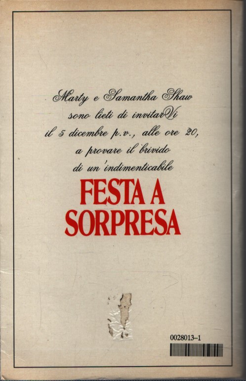 Lo stesso giorno, in un elegante appartamento di Manhattan, Marthy e Samantha Shaw si stanno preparando a festeggiare una felice ricorrenza. Marthy compie quarant’anni e sua moglie ha organizzato per lui una grande festa. Perché la polizia sta curando proprio quell’appartamento? E perché forti sospetti gravano su Marthy? Qualcuno ha scoperto allucinanti segreti che riguardano il suo passato e quella festa diventa, ora dopo ora, sempre più pericolosa e angosciante…