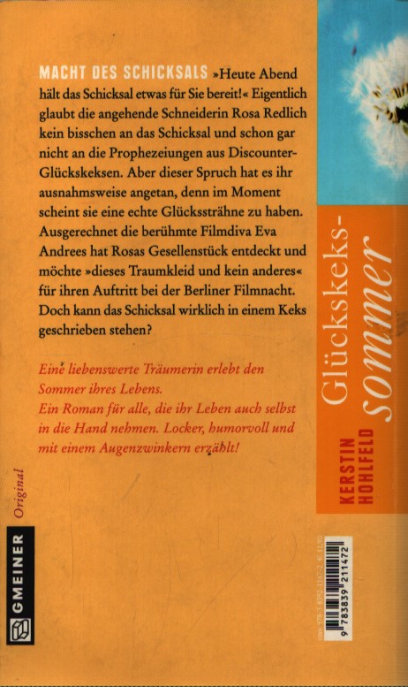 “Stasera, il destino ha qualcosa in serbo per te!” Rosa Redlich, un’aspirante sarta, non crede affatto al destino, e tanto meno alle profezie dei biscotti della fortuna dei discount. Ma questa frase ha catturato la sua attenzione per una volta, perché sembra essere in un momento di vera fortuna. Nientemeno che la famosa diva del cinema Eva Andrees ha scoperto l’abito da lavoro di Rosa e desidera “questo abito da sogno e nessun altro” per la sua apparizione alla Berlinale.…