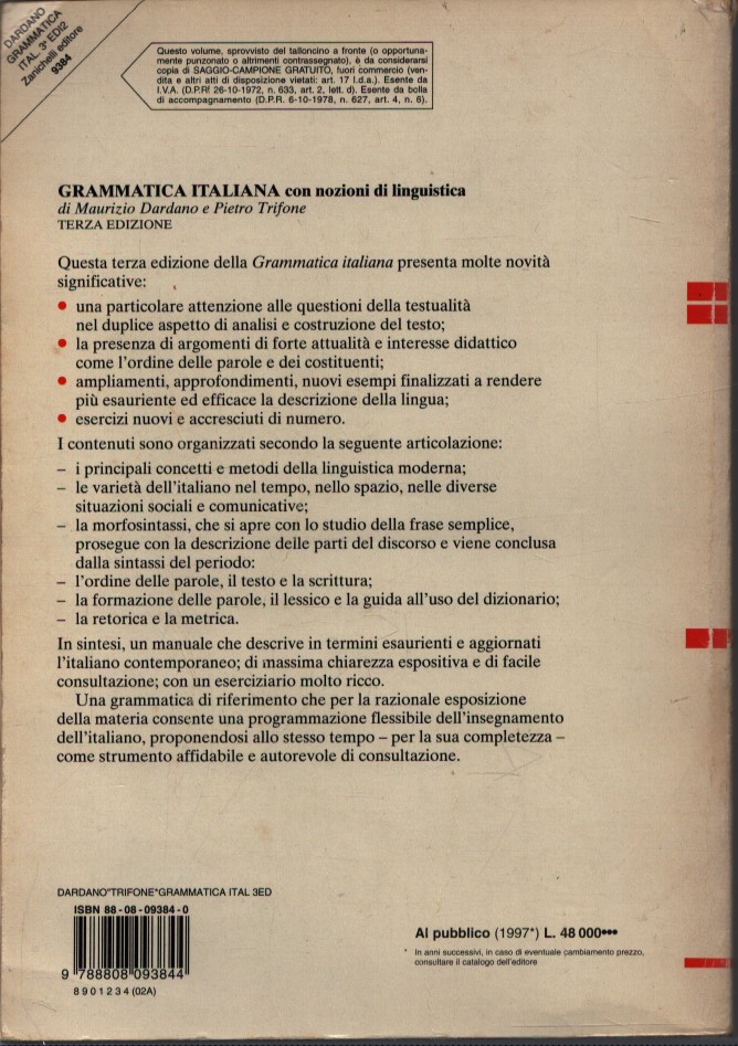 GRAMMATICA ITALIANA . CON NOZIONI DI LINGUISTICA . TERZA EDIZIONE