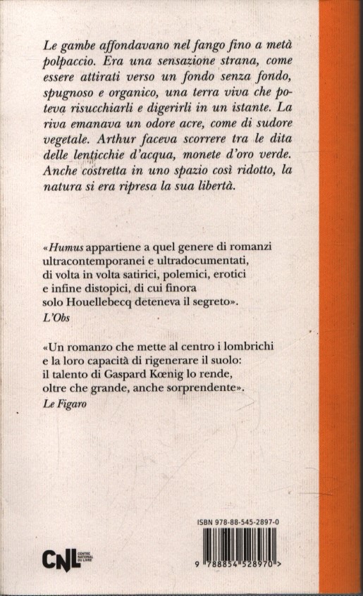 Progressi e sfide della nematologia è il titolo della conferenza, ben poco partecipata, in cui Arthur e Kevin si incontrano per la prima volta. Nematologia, cioè lo studio dei vermi. Pardon, lombrichi. La sede è una delle aule ipermoderne dell’istituto AgroParisTech, inspiegabilmente trasferito dalle campagne dell’Île-deFrance alla spianata di cemento dell’altopiano di Saclay: un’infilata di centri commerciali e isole spartitraffico da cui è più che mai arduo immaginare un futuro verde per la nazione. Eppure sono proprio i lombrichi, arringa il relatore, uno dei migliori strumenti a disposizione per aggiustare il pianeta: sanno trasformare i rifiuti, anche quelli umani, in fine e ricco terriccio nero – humus.