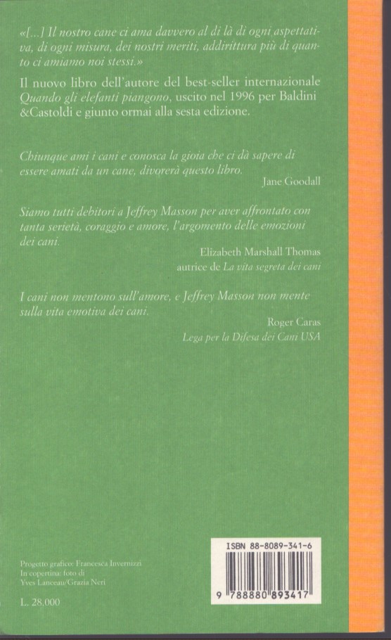 In questo libro Masson affascina il lettore con stile scherzoso riuscendo ad illustrare con chiarezza i lati misteriosi e profondi dei cani. Un libro destinato a tutti coloro che amano questi animali e che mostra una nuova condizione per arrivare a comprenderli meglio, partendo da quella che Masson definisce l’emozione cardine: l’amore, un sentimento su cui i cani non mentono mai.