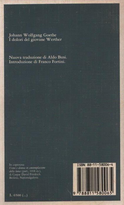 La trama è semplice eppure di un agghiacciante realismo: Werther è innamorato di Lotte, di cui sa fin dall’inizio che non è libera, perchè legata ad Albert. “Stia attento a non innamorarsene”, sarà il consiglio di una cugina a Werther. Ma la tragedia è già innescata. Considerato il primo grande testo del Romanticismo, il Werther supera le barriere storiografiche per divenire il libro di una generazione, di tutte le generazioni, intramontabile.
