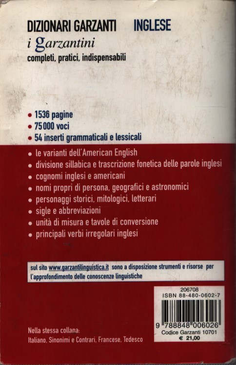 I GARZANTINI . DIZIONARIO INGLESE . INGLESE-ITALIANO . ITALIANO-INGLESE