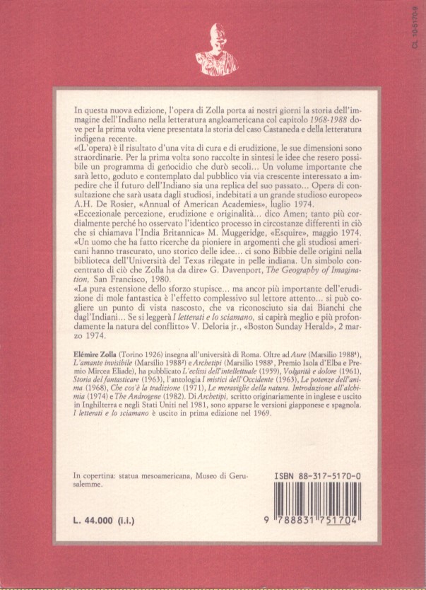 Una morfologia delle civiltà indiane d’America è assai più di una mera registrazione storica della conquista coloniale di quel continente negli ultimi cinque secoli, del tentativo sistematico da parte bianca di ripulsa e oblio dei forzieri di una sapienza atavica, che nessuna indagine etnologica aveva mai colto nel profondo né voluto immettere nei repertori della cultura dominante. Nel lontano 1969 Elémire Zolla ricostruiva ne “I letterati e lo sciamano” la tregenda subita dagli Indiani ma anche la sfaccettata ricchezza simbolica e metafisica di una vita tradizionale inscritta sciamanicamente tra la terra e il cielo. Lo fece esumando per la prima volta testimonianze e scritti, talvolta eccelsi, degli stessi Indiani, che negli ultimi cento anni si sono conquistati un posto di assoluta eminenza nella letteratura americana.