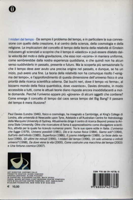Da sempre il problema del tempo è al centro della scienza, della cosmologia e della religione. Einstein ci ha mostrato che il tempo può essere dilatato dalla velocità e dalla gravitazione e non «scorre» in maniera uniforme. Ma soprattutto il tempo deve aver avuto una precisa origine, e dunque, se ha un inizio, può avere una fine. La teoria della relatività non ha comunque risolto l’«enigma del tempo», e l’approfondimento di questa dimensione dell’universo è una priorità della scienza odierna. Dai buchi neri, dove il tempo «si ferma», al bizzarro mondo della fisica quantistica, dove «svanisce», Davies illustra, in modo accessibile a tutti, le domande ancora aperte a cui la ricerca deve rispondere: perché l’universo appare più «giovane» di alcuni oggetti che contiene? Come emerge il concetto di tempo dal caos senza tempo del Big Bang? Il passare del tempo è mera illusione?