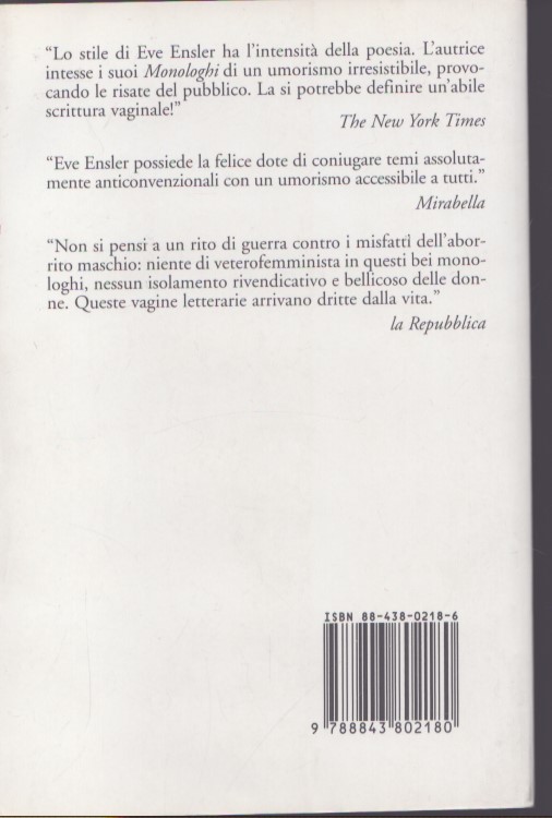 Per la prima volta è la vagina che prende la parola. E la sua può essere una storia seria, divertita, choccante, fantasiosa o drammatica: dalla donna bosniaca stuprata all’anziana signora di sett’anni che scopre l’orgasmo multiplo in una vasca da bagno, passando per ragazze curiose, bambine violate, professioniste del piacere femminile e severe manager in tailleur. Con humour trasgressivo, donne di ogni età, razza, classe sociale e religione provano a dare il loro contributo a questa originale presa di coscienza, smettendo di vergognarsi del proprio sesso e della propria sessualità.