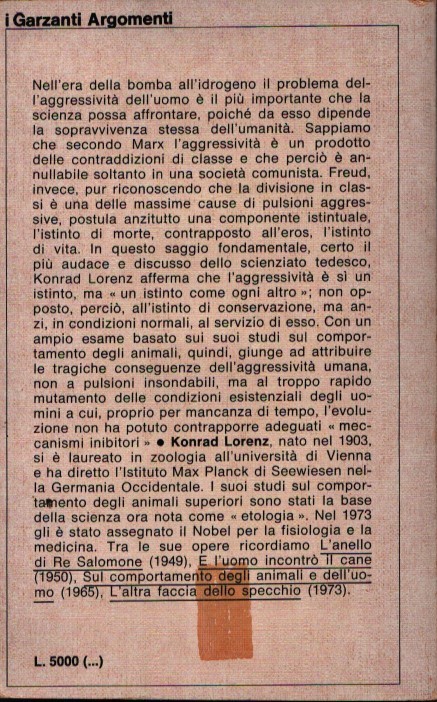 IL COSIDDETTO MALE . PER UNA STORIA NATURALE DELL’AGGRESSIONE
