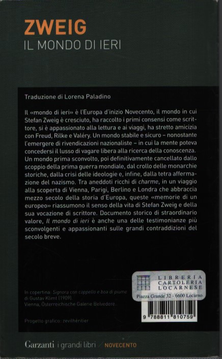Il “mondo di ieri” è l’Europa d’inizio Novecento in cui Stefan Zweig è cresciuto, si è appassionato alla lettura e ai viaggi, ha raccolto i primi consensi come scrittore. È un mondo stabile e sicuro, ricco di charme e sempre pronto a stupire con nuove invenzioni, nuovi artisti, nuove promesse. È il mondo della certezza e della speranza infinite. Per i tantissimi che scoprono o rileggono questo capolavoro, il mondo di ieri è straordinariamente simile al nostro: ricco, soddisfatto, compiaciuto. Ma se ieri tutto è stato tragicamente travolto e cancellato dalla Grande Guerra e dalla tetra, ignobile affermazione dei totalitarismi, quale futuro possiamo attenderci per il mondo di domani?