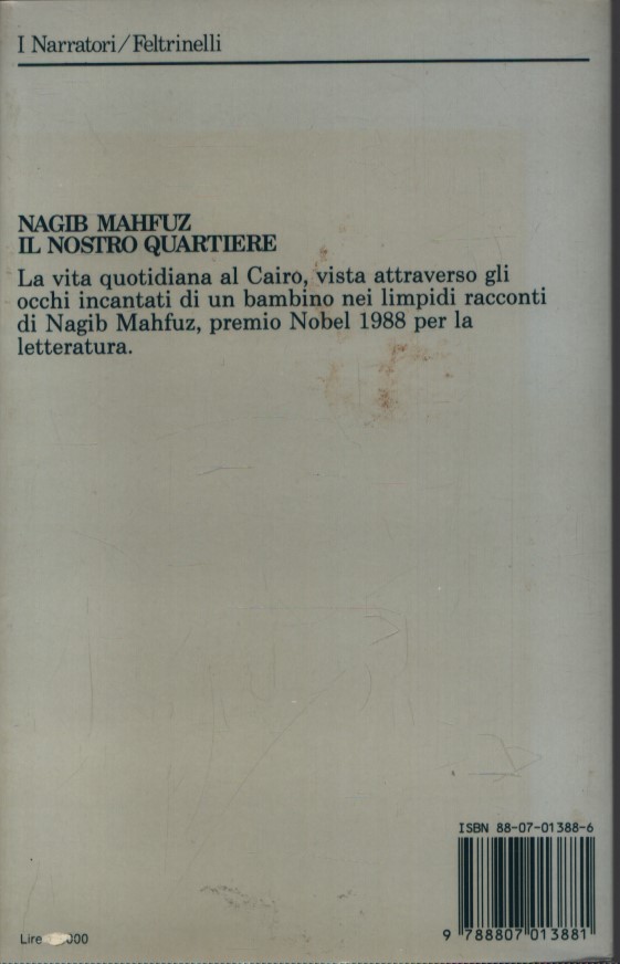 Le cronache di un quartiere raccontate attraverso la quotidianità dei suoi abitanti: la realtà e le fantasie di un mondo in cui si compenetrano gli arcani della tradizione orientale e il sottile fascino della civiltà europea. Realtà come raffigurazione degli eventi che scandiscono la vita del rione e fantasia come strumento di conoscenza delle forme e delle essenze che compongono il ciclo della nascita, vita e morte (la magica visione del monastero, il suo giardino di delizie, l’inquietante oscurità del tunnel, e ancora: l’invisibile Grande Vecchio, l’aleatorio paese al di là dei monti e la baluginante presenza divina). Il protagonista delle settantotto sequenze in cui si ordina “Il nostro quartiere”, un “io” ..