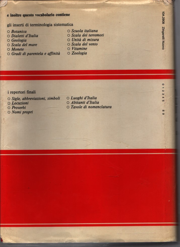 IL NUOVO ZINGARELLI – VOCABOLARIO DELLA LINGUA ITALIANA – UNDICESIMA EDIZIONE