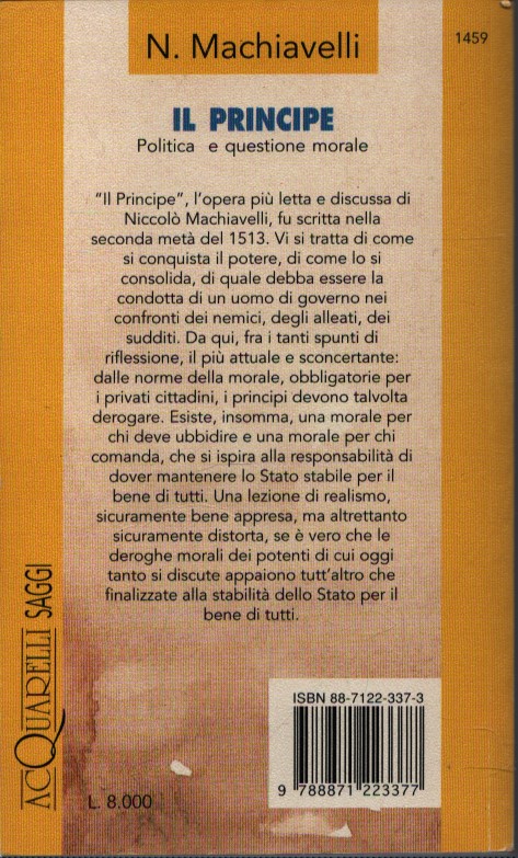 Machiavelli è forse il primo intellettuale europeo a porre in modo “moderno” il problema del rapporto tra gli ideali politici e il loro onevitabile sacrificio nell’applicazione pratica. Nel Principe lo stato è concepito come la creazione di un individuo dotato di potere e di straordinaria virtù, il principe appunto, che deve saper usare, in caso di necessità, anche la violenza nell’esclusivo interesse dello stato. Alla base base della sua sovranità non c’è null’altro che la sua “virtù”, intesa come azione efficace, capacità di cogliere l’occasione con decisione tempestiva, di piegare la fortuna all’obiettivo dell’acquisizione del potere.