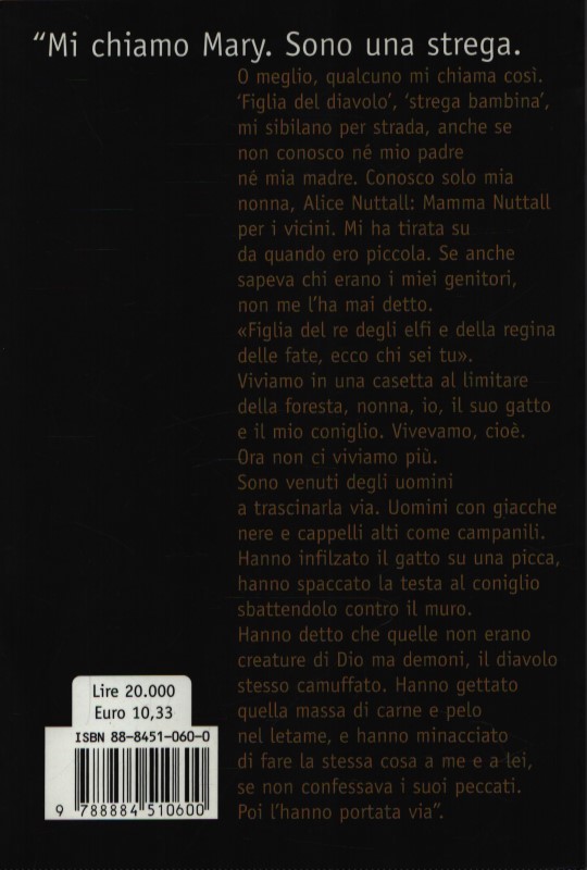 “L’hanno rinchiusa in prigione per più di una settimana. Prima l’hanno fatta camminare a passo di marcia, su e giù, su e giù in mezzo a loro, per un giorno e una notte, finché non è più riuscita nemmeno a zoppicare, tanto aveva i piedi gonfi e sanguinanti. Non avrebbe confessato. Così hanno deciso di dimostrare che era una strega”. Le pagine di un diario sono cucite dentro una trapunta. Una trapunta che giace indisturbata per oltre trecento anni, finché non viene aperta per essere pulita, e allora dalle sue pieghe cade una storia forte ed emozionante. La storia di Mary, nipote di una strega. Quando la nonna di Mary viene condannata a morte per stregoneria, Mary scappa per sfuggire allo stesso destino, prima ..