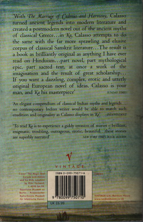 «Chi è Ka?» si domanda l’immenso uccello Garuda, sprofondato tra le fronde dell’albero Rauhina, quando incontra questo nome alla fine di un inno dei Veda. Ka è il nome segreto di Prajapati, il Progenitore, colui che ha dato origine ai trentatré dèi e agli innumerevoli uomini. Presto gli dèi e gli uomini lo avrebbero trascurato, sino quasi a dimenticarlo. Ka significa «Chi?», ed è l’ultima domanda, che si pone quando tutte le altre sono state poste.