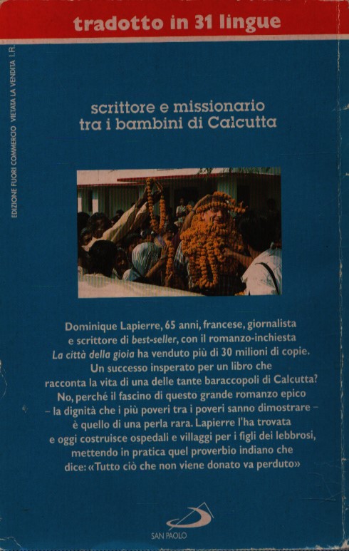 Deluso e amareggiato sotto il profilo professionale, un giovane medico statunitense lascia il suo paese e si trasferisce in India alla ricerca di qualcosa che gli restituisca il senso dell’esistenza, intraprendendo un lungo viaggio dalla ricca America alle bidonville di Calcutta. La realtà che lo aspetta è però sconvolgente, un vero e proprio inferno di miseria e degradazione, nel quale gli uomini cercano di sopravvivere nella più assoluta mancanza di mezzi. Ma proprio qui, nelle allucinanti colonie di lebbrosi della «Città della gioia», in mezzo a inondazioni, fame e malattie, il protagonista riuscirà a ritrovare la forza di riscattarsi. Un romanzo sconvolgente, l’epica della speranza e dell’amore, una straordinaria lezione di coraggio.