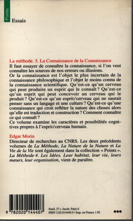 LA MÉTHODE . TOME III . LA CONNAISSANCE DE LA CONNAISSANCE. ANTHROPOLOGIE DE LA CONNAISSANCE