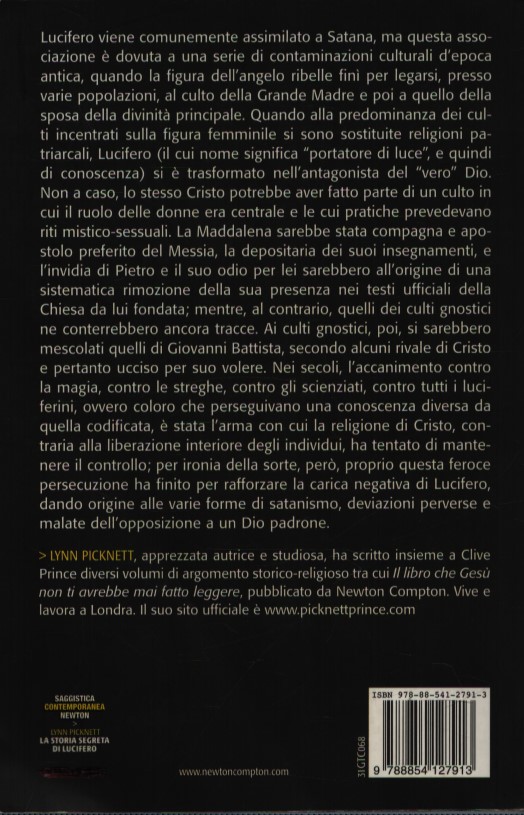 Lucifero viene comunemente assimilato a Satana, ma questa associazione è dovuta a una serie di contaminazioni culturali d’epoca antica, quando la figura dell’angelo ribelle finì per legarsi, presso varie popolazioni, al culto della Grande Madre e poi a quello della sposa della divinità principale. Quando alla predominanza dei culti incentrati sulla figura femminile si sono sostituite religioni patriarcali, Lucifero (il cui nome significa “portatore di luce”, e quindi di conoscenza) si è trasformato nell’antagonista del “vero” Dio. Non a caso, lo stesso Cristo potrebbe aver fatto parte di un culto in cui il ruolo delle donne era centrale.