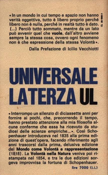 «In un mondo in cui tempo e spazio non hanno verità oggettiva, tutto è libero proprio perché libero non è nulla, perché in realtà tutto è dato. […] Perciò tutto sommato, mentre da un lato può avvenir quel che ‘vuole’, dall’altro avviene sempre la stessa cosa, ovvero ogni fenomeno non è che l’espressione della stessa Volontà». Dalla Prefazione di Icilio Vecchiotti «Interrompo un silenzio di diciassette anni per fornire ai pochi, che, precorrendo il tempo, hanno prestato attenzione alla mia filosofia, alcune conferme che essa ha ricevuto da studiosi delle scienze empiriche…».