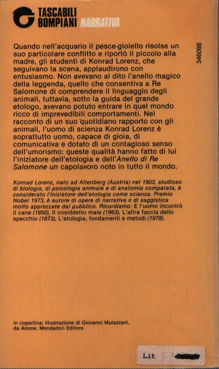 Che i pesci possano essere estremamente passionali; che le tortore siano più feroci dei lupi con gli animali della propria specie; che un’oca possa credere di appartenere alla specie umana, e in particolare di essere la figlia dello scienziato che l’ha covata: ecco alcune delle sorprese che avranno i lettori di questo libro. Che cosa significhi capire gli animali moltissimi di noi lo hanno imparato dalle pagine di Lorenz. Non solo perché Lorenz è stato uno dei padri fondatori dell’etologia, ma perché Lorenz ha saputo vivere con gli animali, con una curiosità, un’affettuosità verso ogni creatura, un senso del gioco e un dono del raccontare le loro storie che mai ha manifestato così compiutamente come nell’«Anello di Re Salomone».