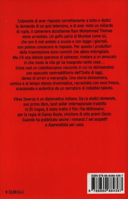 Colpevole di aver risposto correttamente a tutte e dodici le domande di un quiz televisivo, e di aver vinto un miliardo di rupie, il cameriere diciottenne Ram Mohammad Thomas viene arrestato. Un goffo paria di Mumbai come lui, che non è mai andato a scuola e non legge i giornali, non poteva conoscere le risposte. Per questo i produttori della trasmissione sono convinti che abbia imbrogliato. Certo è che se l’è andata a cercare: come ripetono gli anziani della baraccopoli in cui vive Ram, non è saggio cercare di oltrepassare la linea che separa l’esistenza del ricco da quella del povero. In questo mondo, non c’è speranza di riscatto. Ma c’è una debole speranza di salvezza, che ha il volto di una donna venuta quasi dal nulla e che dichiara di essere il suo avvocato difensore. Per il momento Ram è salvo. Lo aspetta la notte più lunga della sua vita, quella in cui dovrà spiegare al suo inaspettato legale come sia riuscito a rispondere. Inizia così un racconto in cui va delineandosi uno spaccato dell’India di oggi denso di orrori e di meraviglie.