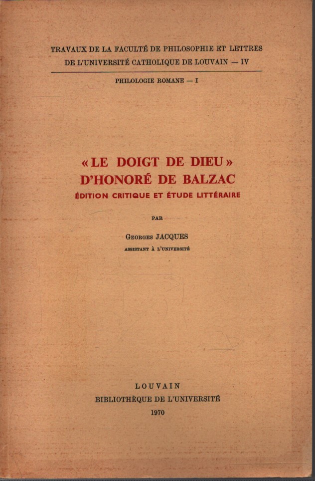 “LE DOIGT DE DIEU” D’HONORÉ DE BALZAC . ÉDITION CRITIQUE ET ÉTUDE LITTÉRAIRE