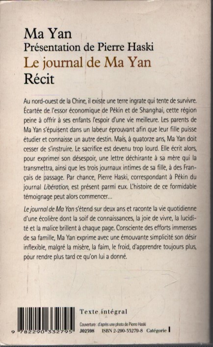 LE JOURNAL DE MA YAN . LA VIE QUOTIDIENNE D’UN ÉCOLIÈRE CHINOISE
