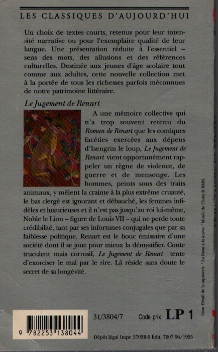 LE JUGEMENT DE RENART . (ROMAN DE RENART, BRANCHE I, Ia, Ib)
