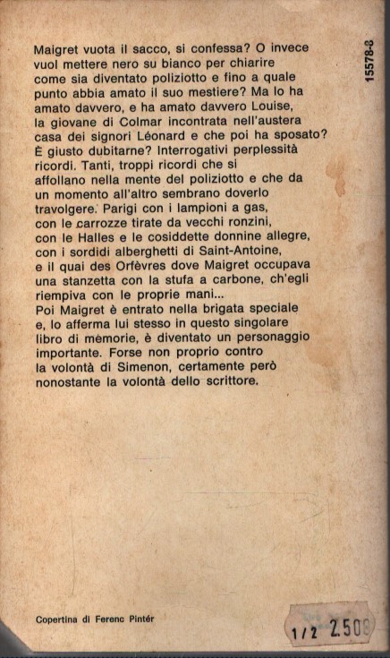 A più di vent’anni di distanza, un Maigret ormai pensionato intende con le sue memorie ristabilire la verità. E comincia proprio dal giorno in cui il personaggio aveva incontrato il suo autore; continua con il racconto della sua infanzia e adolescenza, del suo arrivo a Parigi, della sua decisione di entrare nella polizia, e dell’incontro con quella che diventerà sua moglie; e passa poi a fare un quadro “veritiero” della vita di un giovane poliziotto nella Parigi degli anni Venti. Le memorie si chiudono con la nomina di Maigret a ispettore.