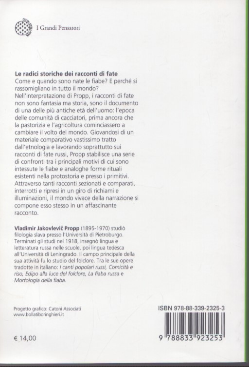 Come e quando sono nate le fiabe? E perché si rassomigliano in tutto il mondo? Nell’interpretazione di Propp, i racconti di fate non sono fantasia ma storia, sono il documento di una delle più antiche età dell’uomo: l’epoca delle comunità di cacciatori, prima ancora che la pastorizia e l’agricoltura cominciassero a cambiare il volto del mondo. Giovandosi di un materiale comparativo vastissimo tratto dall’etnologia e lavorando soprattutto sui racconti di fate russi, Propp stabilisce una serie di confronti tra i principali motivi di cui sono intessute le fiabe e analoghe forme rituali esistenti nella protostoria e presso i primitivi.