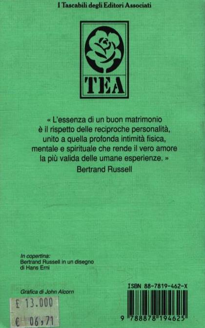 «L’essenza di un buon matrimonio è il rispetto delle reciproche personalità, unito a quella profonda intimità fisica, mentale e spirituale che rende il vero amore la più valida delle umane esperienze. Tale amore, come ogni cosa grande e preziosa, vuole una sua propria morale, e spesso sacrifica il meno al più. Ma questo sacrificio deve essere volontario, altrimenti verrebbe ad essere distrutto quell’amore, per amore del quale viene compiuto.» Nel 1929 questo saggio fu considerato scandaloso dagli ambienti più tradizionalisti.