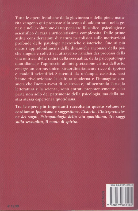 OPERE 1886/1905 IPNOTISMO E SUGGESTIONE, L’ISTERIA, L’INTERPRETAZIONE DEI SOGNI, PSICOPATOLOGIA DELLA VITA QUOTIDIANA, TRE SAGGI SULLA SESSUALITÀ, IL MOTTO DI SPIRITO E ALTRI SAGGI