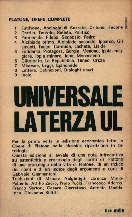 OPERE COMPLETE . CRATILO, TEETETO, SOFISTA, POLITICO . VOLUME SECONDO . 189