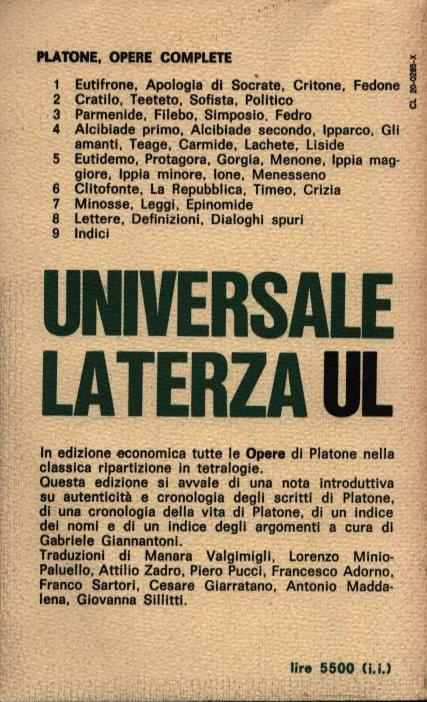 OPERE COMPLETE . MINOSSE, LEGGI, EPINOMIDE . VOLUME SETTIMO . 194