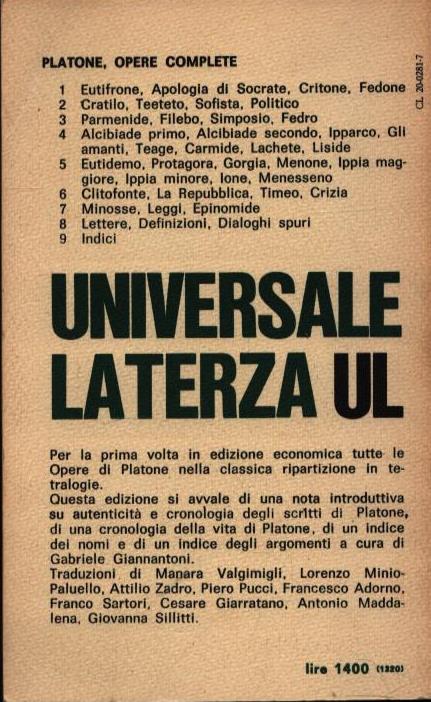 OPERE COMPLETE . PARMENIDE, FILEBO, SIMPOSIO, FEDRO . VOLUME TERZO . 190