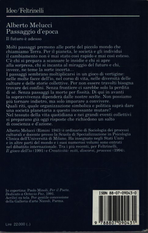 “Molti passaggi premono alle porte del piccolo mondo che chiamiamo Terra. Per il pianeta, le società e gli individui il cambiamento non è mai stato cosi rapido e mai cosi esteso. C’è chi si prepara a scansare le insidie e chi si apre alla sorpresa, chi si incanta al miraggio del futuro e chi, invece, ne teme la sorte incerta…I passaggi sembrano moltiplicarsi in un gioco di vertigine: nelle molte facce dell’io, nel corso di vita, nelle diversità delle culture e delle storie collettive. Per non essere travolti bisogna trovare dei confini. Senza frontiere ci sarebbe solo la perdita di sé. Senza passaggi la morte per fissità. Di qui in avanti la sopravvivenza dipenderà dalle nostre scelte. Non possiamo più tornare indietro, ma solo imparare a convivere. Quali riti, quale organizzazione simbolica e politica saprà dare una società planetaria a questo incessante mutare? Nel tessuto della vita quotidiana e nei grandi eventi collettivi si preparano gia oggi risposte che richiedono un salto di coscienza e d’azione.”