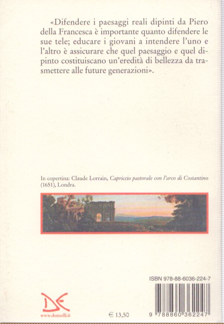 Difendere i paesaggi reali dipinti da Piero della Francesca è importante quanto difendere le sue tele; educare i giovani a intendere l’uno e l’altro è assicurare che quel paesaggio e quel dipinto costituiscano un’eredità di bellezza da trasmettere alle future generazioni. L’Italia ha un’invidiabile tradizione artistica che da secoli ne fa una meta obbligata per i viaggiatori, letterati, uomini di cultura di ogni parte del mondo che vengono a scoprire meraviglie antiche e moderne: dalle grandi vestigia dell’antichità a Giotto, da Raffaello a Bernini, da Canova a Morandi.