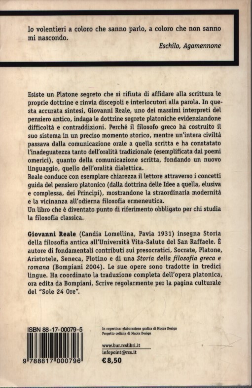 Esiste un Platone segreto che si rifiuta di affidare alla scrittura le proprie dottrine e rinvia discepoli e interlocutori alla parola. In questa accurata sintesi, Giovanni Reale indaga le dottrine segrete platoniche evidenziandone difficoltà e contraddizioni. Perché il filosofo greco ha costruito il suo sistema in un preciso momento storico, mentre un’intera civiltà passava dalla comunicazione orale a quella scritta e ha constatato l’inadeguatezza tanto dell’oralità tradizionale (esemplificata dai poemi omerici), quanto della comunicazione scritta, fondando un nuovo linguaggio, quello dell’oralità dialettica. Reale conduce il lettore attraverso i concetti guida del pensiero platonico, mostrandone la vicinanza all’odierna filosofia ermeneutica.